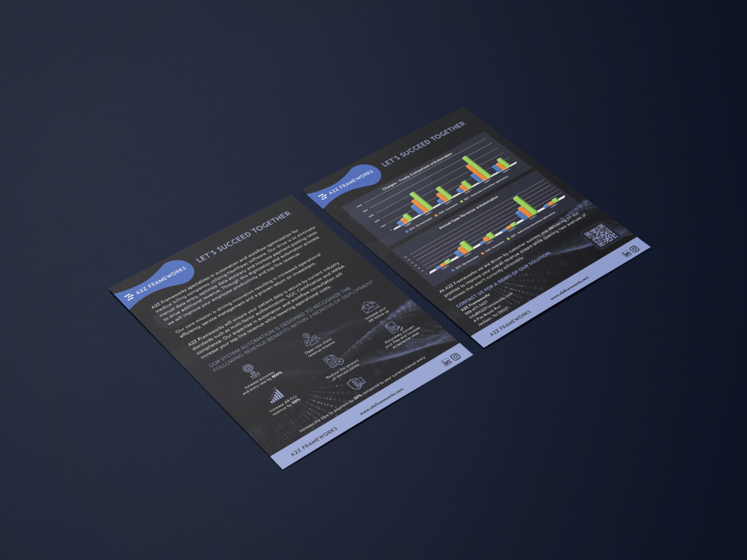 I designed a promotional marketing flyer to introduce A2Z Frameworks’ services, which led to a redesign of their logo—shifting from a generic design to a modern, tech-inspired look with network and connection elements. I also developed concepts for branded merchandise and corporate apparel, establishing a strong and consistent brand presence in both print and product offerings.
